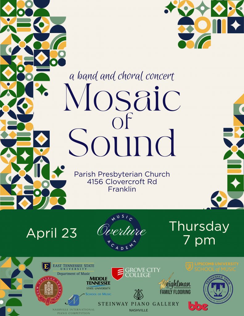 Overture Music Academy exists to glorify God by providing excellent music instruction in a Christian community for students in Middle Tennessee.