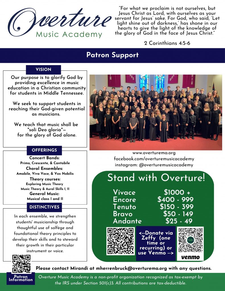 Are you interested in becoming a patron or season sponsor of Overture Music Academy?